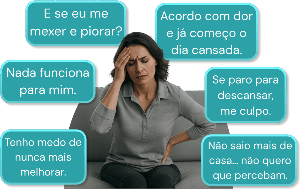 O que acontece é que muitas vezes você caiu em ciclos de dor — medo, fadiga, isolamento, inflamação — que se alimentam e aumentam a sensibilidade do corpo.
